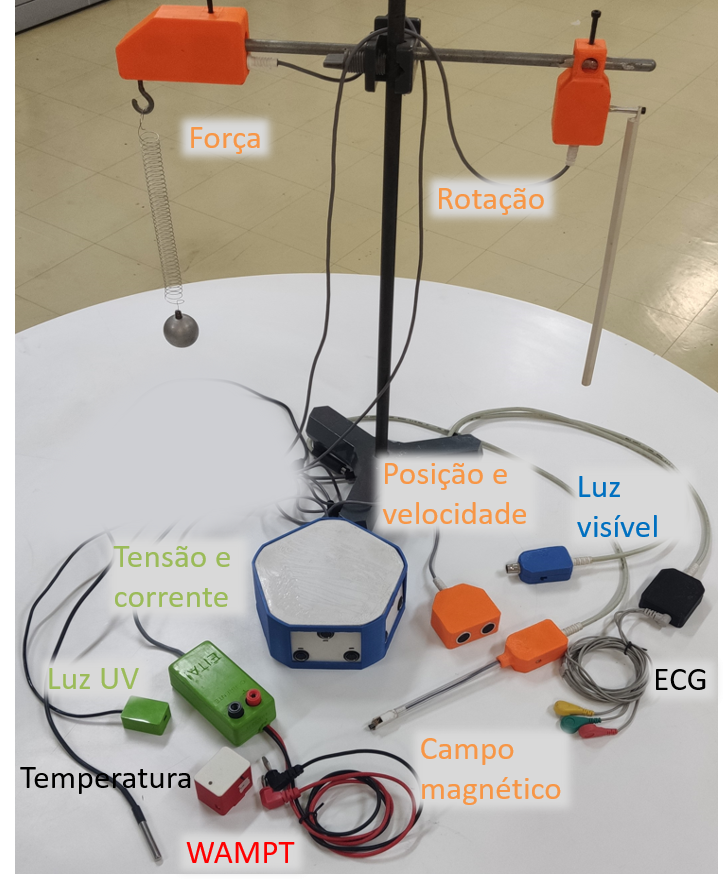 Já criamos sensores de campo magnético, intensidade de luz, temperatura, movimento, aceleração, rotação, força, ECG, tensão e corrente elétricas. Estamos criando outros sensores e melhorando os programas de controle e aquisição de dados.